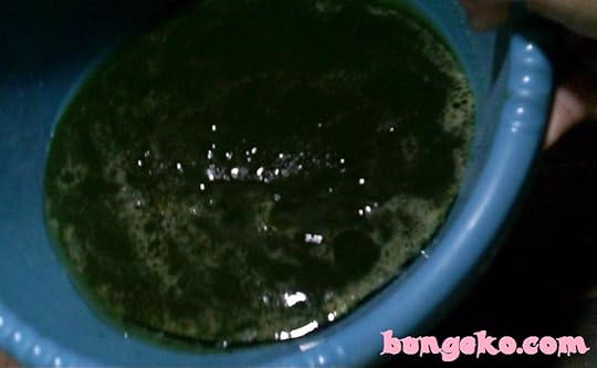 Diamkan air perasan daun tadi di wadah selama beberapa saat. Tutup rapat agar tak dimasuki debu atau serangga. Selama didiamkan itu gel yang keluar dari daun akan bersenyawa dengan air sehingga membentuk semacam agar-agar. Kenyal, hijau, kalau dimakan rasanya segar tak terkira.