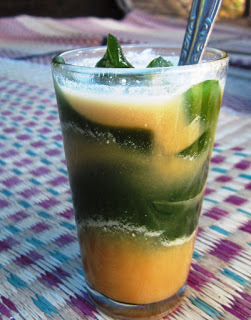 Dan.... Jadilah cincau hijau ala Keluarga Bung Eko. Cara penyajiannya sangat gampang. Potong dadu cincau hijau, bisa juga langsung disendok saja, masukkan ke dalam gelas. Campurkan juruh dan santan, lalu tambahkan es batu jika suka. Kalau tidak cukup taruh di dalam kulkas selama beberapa menit. Beres! Selanjutnya tinggal menikmati. Segar.