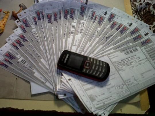 Kebutuhan lain yang tak kalah penting adalah pulsa. Meski di rumah sudah terpancar jaringan wifi dari Speedy, tetap saja tiga hape yang saya dan istri punya harus diisi pulsa. Terlebih dua hape digunakan untuk mendukung toko online, dan calon pembeli seringkali lebih suka mengirim SMS ketimbang BBM atau WhatsApp. Harus sedia pulsa untuk membalasnya, bukan?