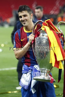 David Villa, mencetak gol untuk trofi Liga Champions pertamanya bersama Barca.