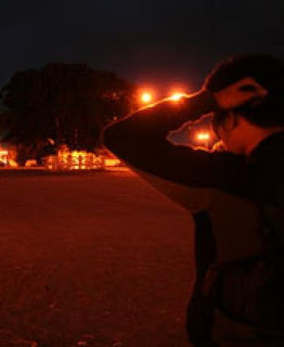 SEORANG pemuda menutup mata teman perempuannya dengan seutas kain hitam. Diikatnya penutup tersebut erat-erat agar mata teman perempuannya benar-benar tak dapat melihat. Setelah itu dituntunnya si perempuan ke tengah lapangan. Di satu posisi segaris lurus dengan bagian tengah lapangan yang diapit dua pohon beringin besar, dilepaskannya si perempuan berjalan ke depan.