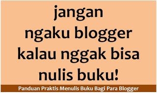 Nah, mengawali tahun 2011, saya merampungkan 1 naskah baru. Judulnya, seperti terlihat pada gambar, bernada provokatif. Buku ini berisi panduan sekaligus dorongan bagi rekan-rekan blogger untuk menulis buku. Naskahnya sudah jadi, namun belum final. Saya sedang mendekati beberapa rekan blogger yang bersedia meluangkan waktu mereka untuk membaca draf naskah ini, mengkritiknya, memberi saran, dan syukur-syukur endorsemenet yang nantinya akan saya cantumkan dalam naskah final. Kalau saja naskah ini diterima dan diterbitkan, besar kemungkinan endorsemenet tersebut ditampilkan di cover buku.
