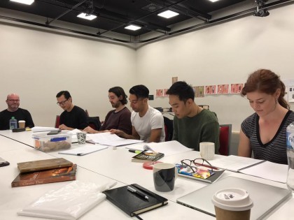 Above: the first read through of the script with the cast