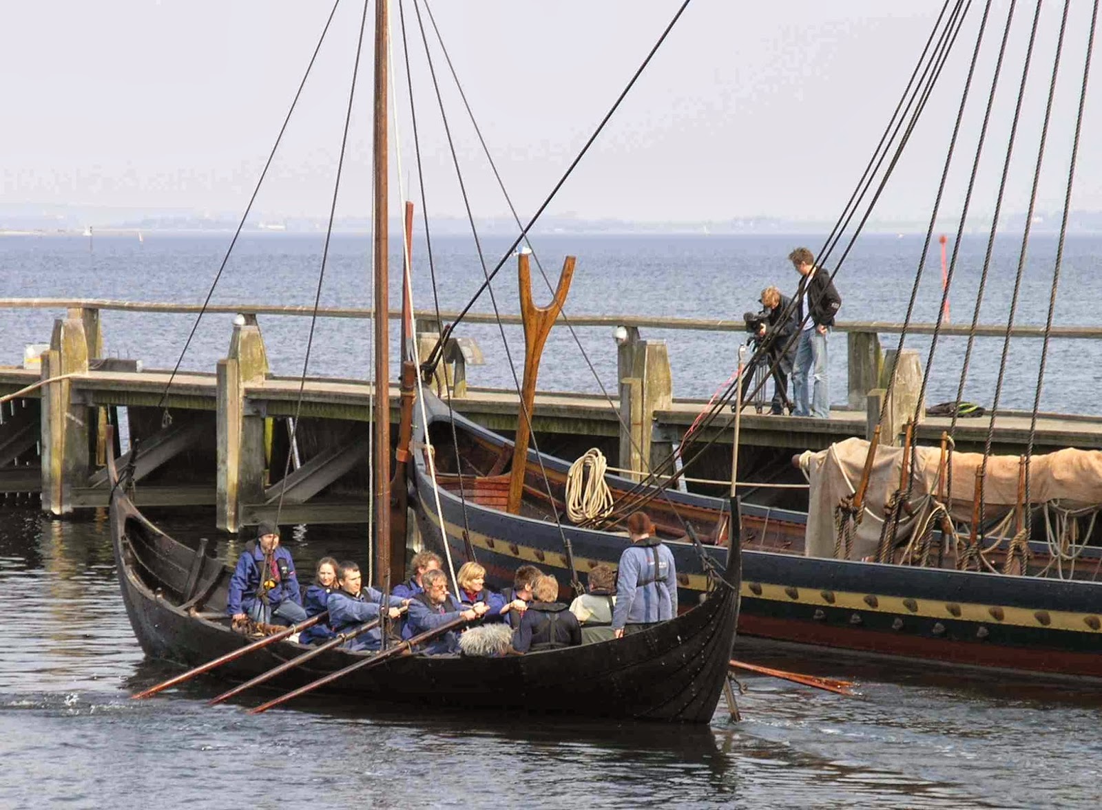 Those lines are so various, just among the replica ships afloat in Roskilde harbor, that it's hard to say they’re all "Viking ships." The tubby knarr, 52 feet long and a buxom 16 feet wide, is docked beside the dragonship Havhingsten ("The Sea Stallion"), 98 feet long but a slender 12 feet wide. A smaller cargo ship, a byrding of more "elegant" proportions, carried only four-and-a-half tons of cargo to the bigger knarr's 24 tons, while a smaller warship, called a snekke or "snake," could only handle 30 warriors to Sea Stallion's 80.