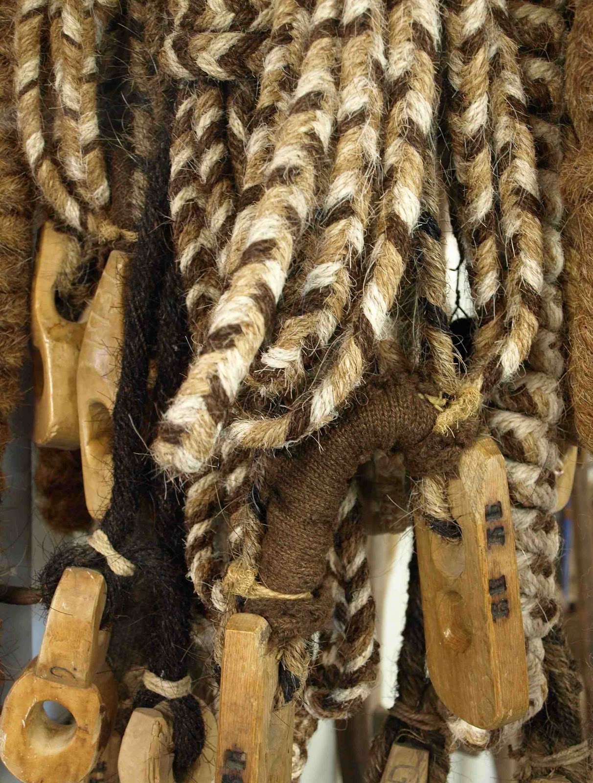 And alongside a collection of butter churns and side-saddles and children's toys (made of bones) were what caught my eye: beautiful bags and ropes made of different colors of horse hair.