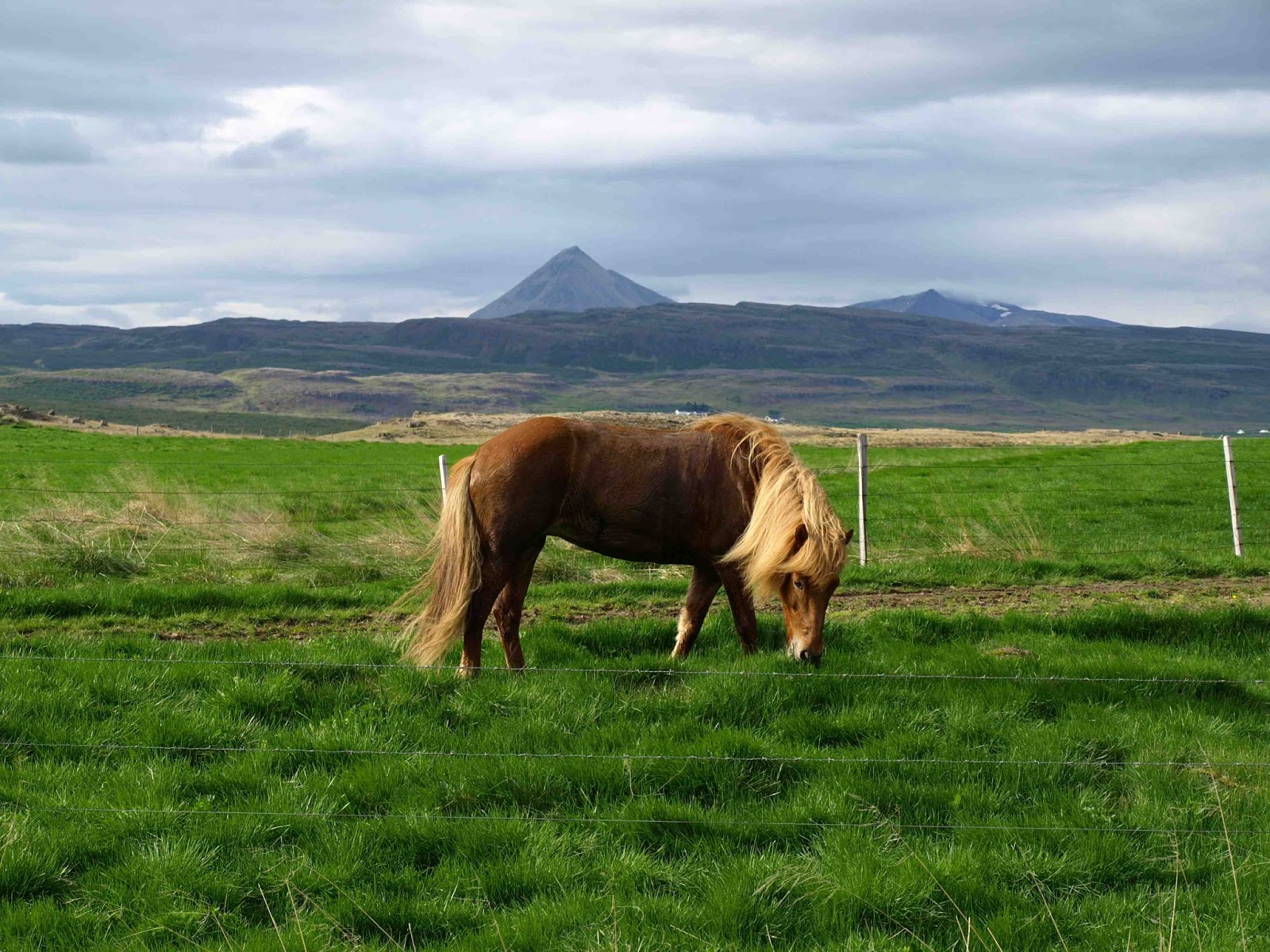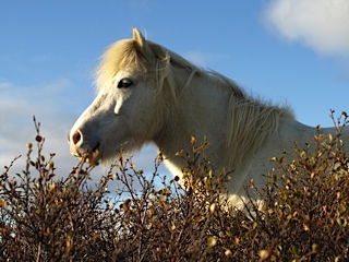 The horse that lives in a lake in Iceland is called a nykur or "nicker." They are always gray, and can usually be identified by their hooves: turned back to front. They should never be ridden. The Old Icelandic dictionary known as Cleasby-Vigfusson calls them a kind of “sea goblin,” and notes that they can take on other shapes than that of a horse. In this they are like the Scottish water horse, or kelpie, which can also appear as a gnome or an elf. A kelpie waits by the side of a river until he sees travelers approaching. Then he assumes his horse’s shape and drags to the riverbottom anyone foolish enough to mount him. In Iceland, at least the nicker waits for the magic words.