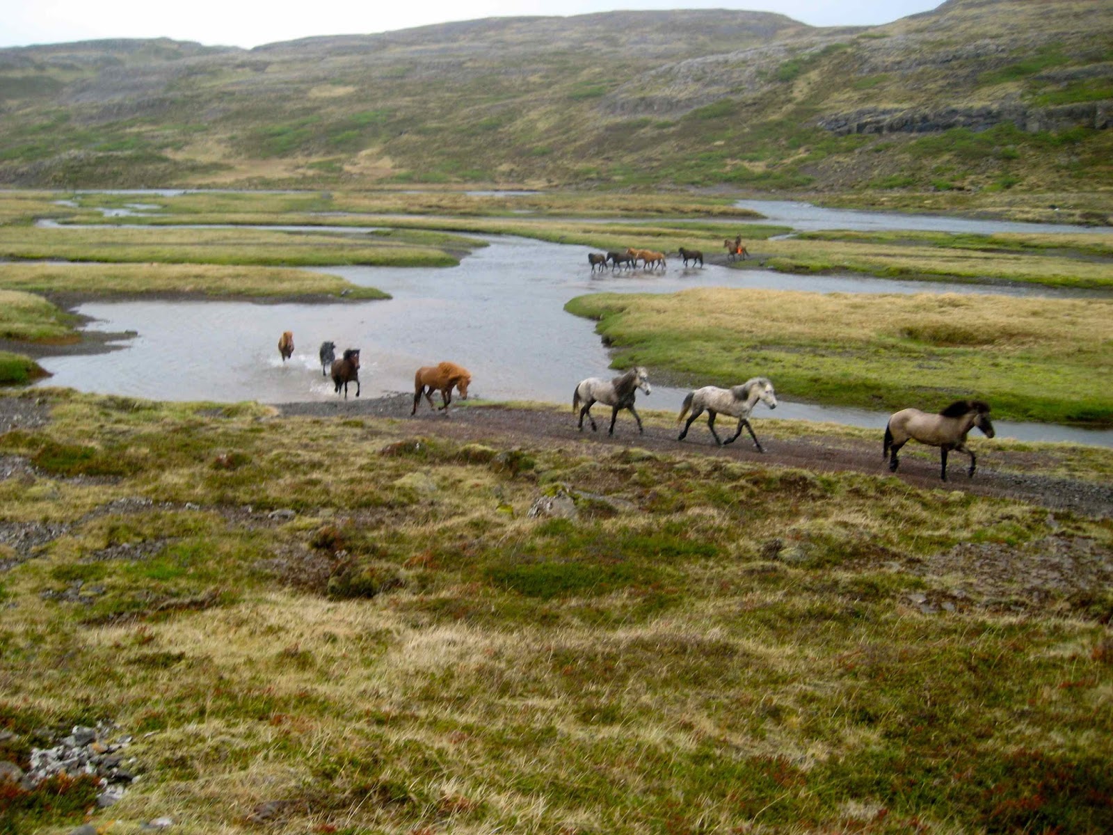 Hrafnkel hired his poor neighbor’s son, Einar, a promising young man, as his shepherd and warned him not to ride Freyfaxi. All went well until midsummer, when Einar lost track of 30 of Hrafnkel’s sheep. They went missing for a week, and finally he took a bridle and saddlecloth and went to catch a horse to help him search. “But when he came closer, all the mares bolted away from him, and he chased them without success. They had never been so shy before. Only Freyfaxi remained behind; he was as still as if he were anchored to the ground.”Foolishly, Einar rode Freyfaxi “from dawn to mid-evening, traveling fast and far, for this was an outstanding horse.” By the time they found the lost sheep, “Freyfaxi was all running with sweat; and every hair on his body was dripping. He was covered in mud and panting from exhaustion.” As soon as Einar loosed him, “he rolled over a dozen times, and the neighed loudly and started to race down the path.” He ran right to the farmhouse, “came up to the door and neighed loudly.”