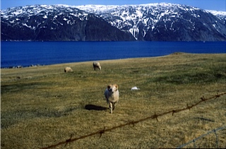 Our neighbors' lambs arebeing born here in Vermont now, and soon it will be lambing time in Icelandtoo. I remember one Icelandic friend of mine, sad that they were giving upsheep-farming, say, "But it won't be spring without lambs bouncing around."I've never been in Icelandduring lambing time, but when I went to Greenland to see Eirik the Red's Vikingsettlement there in May 2006, the people who lived on Eirik's old farm,Brattahlid, were in the middle of lambing season. They had learned theircraft—and bought their sheep—in Iceland, and were trying to recreate (withgovernment help) the Viking economy.