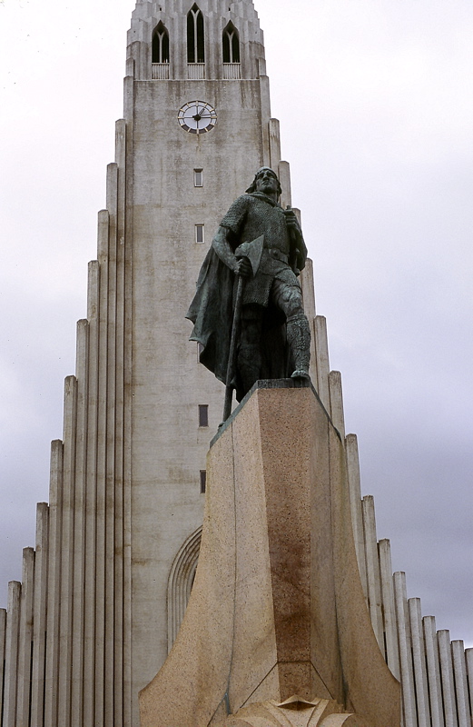 Few people have trouble imagining Leif Eiriksson, who discovered America in around the year 1000, as a Viking. Every representation of him that I have ever seen includes a spear or large axe--like this one in front of Hallgrimskirkja in Reykjavik. But why does Leif get all the credit? After his first sight of the New World, he never went back Gudrid, Leif's sister-in-law, was the real explorer. She tried to settle there twice, with two different husbands. If you want to learn about Viking explorers, put Gudrid the Far-Traveler at the top of your list.Gudrid's voyages appear in two of the medieval Icelandic sagas, written a hundred or more years after her death. Pagani finds the importance of the Icelandic sagas "exaggerated or distorted" too, and again, I disagree. Pagani points out that many other cultures produced fine vernacular prose works in the 13th century. That may be true, but what makes medieval Icelandic literature unique is that, not only were the sagas and Eddas written, they were preserved. As I point out in Ivory Vikings, more medieval literature exists in Icelandic than in any other European language except Latin.