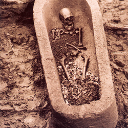 Bishop Pall's sarcophagus. From fornleifur.blog.isIn the mid-1950s, before the new church was built at Skalholt, archaeologists were called in to excavate. They were uncovering the floorplan of the huge cross-shaped medieval basilica, the largest wooden church in Scandinavia at the time, when one of the workers struck stone. "Of all the things that came to light during the excavations at Skalholt," said archaeologist Kristjan Eldjarn (who later became president of Iceland), "the grave of Pall Jonsson is the most important and meaningful. It is not certain that another such sign and wonder of the Icelandic sagas could ever be unearthed."