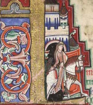 But the similarity to Icelandic horses is not proof that the chessmen were carved in Iceland. Most horses in Northern Europe at that time were just as small--as we can see by comparing a Lewis knight with other 11th and 12th century images of people on horseback. In each case, the rider's feet dangle down, way down, below the horse's belly.