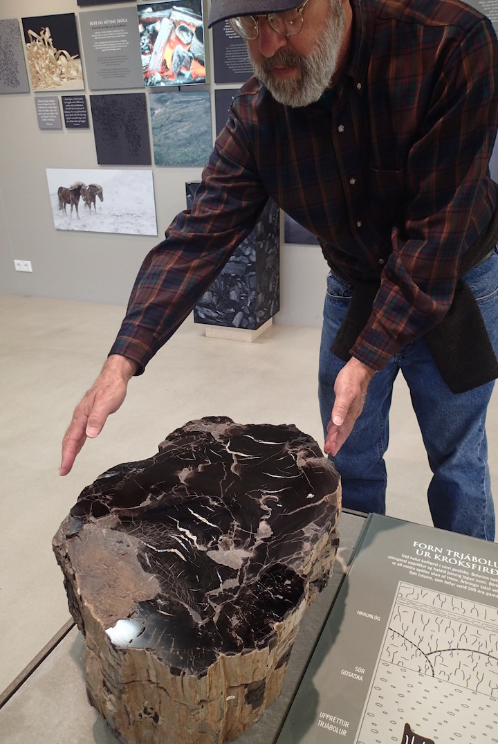The story of Iceland's desertification is well told at the soil conservation service's new museum, Safnagardur [website], just east of Hella, where these two photos were taken. The bottom one shows a surprisingly large piece of petrified wood found in Iceland.