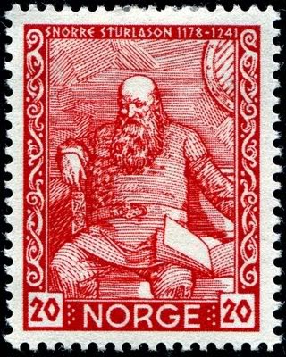 In 1918 Iceland became a sovereign state in a "personal union" with the Danish king--much like the situation in 1262, when the chieftains swore oaths of loyalty to King Hakon the Old. For its coat-of-arms the new nation turned once again to Snorri.