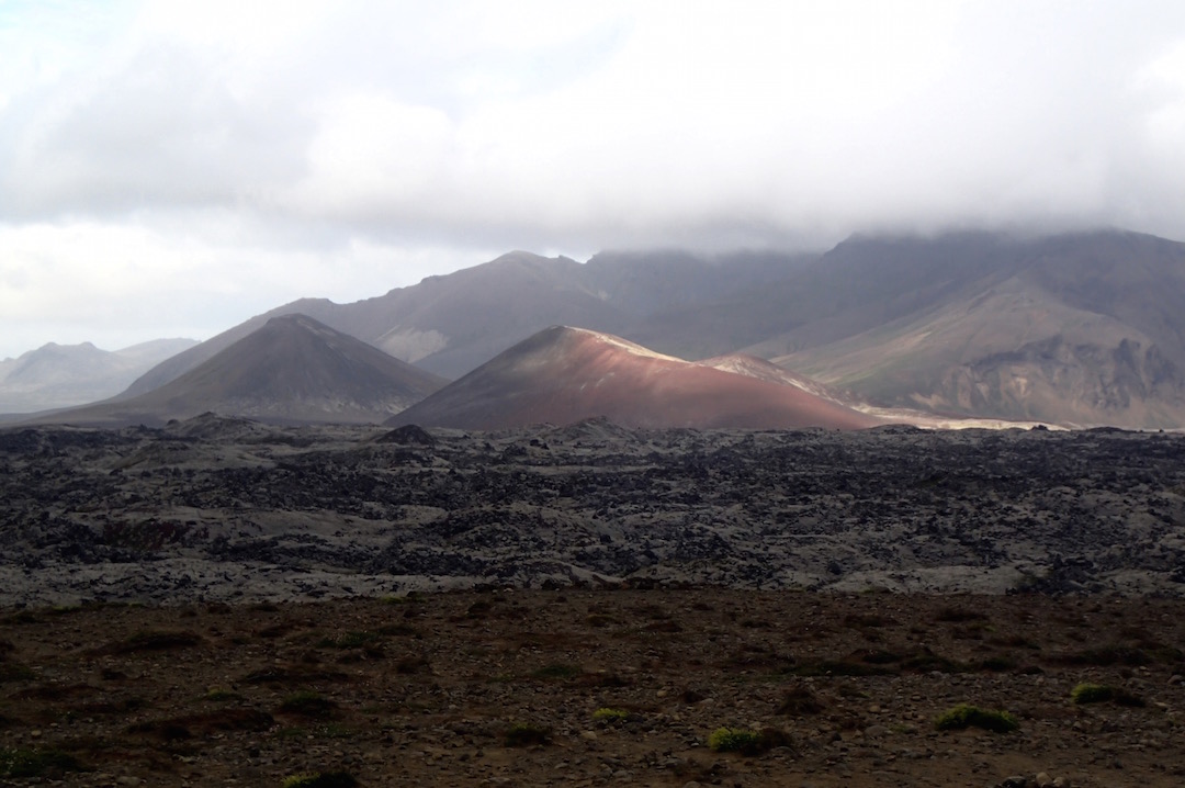 Twice in the 1990s, while they were still in school, I rode on horseback from a farm near Hella around the volcano Hekla to the hotspring area at Landmannalaugar. Once we had six days of driving rain (read about that trip here: 2/29/12). The second trip I got badly sunburned and rode like Jesse James with a bandanna tied around my nose and mouth to filter out the suffocating dust.
