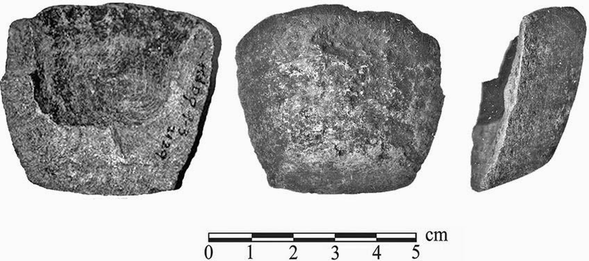 Under two inches high, the crucible was carved from a gray metamorphic rock not found near Nanook. Among the possible sources are the west coast of Greenland.