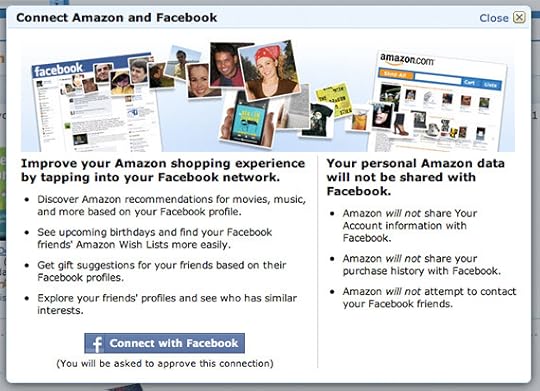 Amazon and Facebook announced today a new partnership, using Facebook Connect, that combines the best of both companies. You can buy lots of stuff on Amazon for people you know on Facebook! It's a smart move from Amazon, the latest in its "Web 3.0" changes.