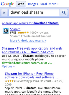 Google announced today that mobile search is now just as app-happy as the rest of the smartphone world. Typically, to find an app, you'd have to go to your app app (well, isn't that awkward) like Android Market or iPhone App Store, then do your searching from inside the store. But why not use Google search instead?