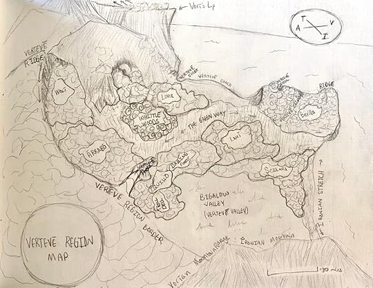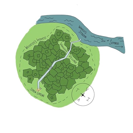 The eiffels of Book One live in two different areas of the valley (see map above). Whittle Woods is home to the eiffels who love to build (if you can’t already tell from the name). The other eiffels of the valley, who are more of the herding type, care for large cow-like creatures called bigalows in either the Darling Forest or the Troll Dell. (The female bigalows were called Darlings and the boys were named Trolls by the eiffels to help them remember the temperament of each.)
