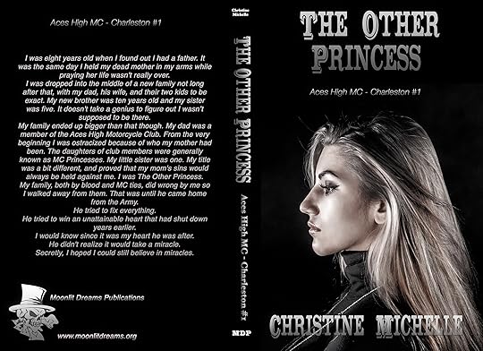 About The Other Princess:Approximately 80k words.Book World: Aces High MCBook Series: Aces High MC - CharlestonNumber in Series: 1Availability: Pre-order on AmazonRelease Date: Jan. 10, 2019NOTE: Be aware that the Charleston Series deals almost fully with internal family drama instead of over-the-top explosions, killing, and maiming that a lot of MC Romances delve into. This is NOT a DARK ROMANCE. It is a family drama and contemporary romance! The family just happens to ride Harleys and belong to a club that can sometimes be hard to handle. It is also ROMANCE and not EROTICA, so while there is some steam, sex does not drive the plot! :DDescription:I was eight years old when I found out I had a father. It was the same day I held my dead mother in my arms while praying her life wasn't really over. I was dropped into the middle of a new family not long after that. My dad, his wife, and their two kids to be exact. My new brother was ten years old and my sister was five. It doesn't take a genius to figure out I wasn’t supposed to be there. My family ended up bigger than that though. My dad was a member of the Aces High Motorcycle Club. From the very beginning I was ostracized because of who my mother had been. The daughters of club members were generally known as MC Princesses. My little sister was one. My title was a bit different, and proved that my mom's sins would always be held against me. I was The Other Princess. My family, both by blood and MC ties, did wrong by me so I walked away from them. That was until he came home from the Army. He tried to fix everything. He tried to win an unattainable heart that had shut down years earlier. I would know since it was my heart he was after. He didn't realize it would take a miracle. Secretly, I hoped I could still believe in miracles.Next up this month will be Redemption Weather - another Aces High MC World Book! Redemption Weather should have preorders available by Jan. 15, and the links will be posted on the website as well as Christine's facebook page. https://www.facebook.com/authorchrist...