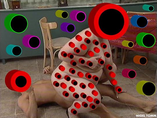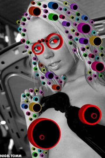 She came without an introduction. She said nothing. We were sitting and drinking tea. One hour later she wasn't there. It was only her imaginary pics. In some red corners of my mind. It was good. So good. I'm Nigel Tomm and this is my new photo installation art. Title: