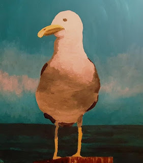 Gulls have been on my mind lately. Why I don’t know. Maybe it’s because I have these two paintings in the living room that I haven’t finished yet. Maybe it’s because the babies born this season in Pacific Grove are beginning to stretch their wings and take flight, yet they still lower their heads and call out for their parents to feed them. The one I saw today, gray and large, stood in the middle of the road pecking at a to-go cup lid. After it decided the lid wasn’t worth its time, the gull turned and began to strut away toward Central Avenue. Only the lid wasn’t done with it. A slight gust of wind, not enough to sway a branch or lift a skirt, blew over the lid and made it roll toward the gull as it walked (they kind of strut though, which I think I said already). The gull flipped out, thinking the lid had come to life and was chasing its ass down. I couldn’t help but laugh. It was a cute sight. The simplicity of it all hit me. And that felt nice. Maybe I’ve been thinking of them because they get a bad rap. I’ve always been a fan of the underdogs. So many may dislike them, but they’ve won me over.They might be on my mind because of a Facebook post. I recently learned the book “Jonathan Livingston Seagull” was the best seller the year I was born. This led me to want to read it. Can you believe the book is $11.99 for a digital download? Must be a special read I suppose, and my Facebook friends seemed to think it is.It could be a gull’s relationships fascinate me, its upbringing, how they all cling to California’s coastal cities with flippered tenacity; these things are so different than what we do. Some of it’s the same, but so much is different. Gulls hardly even bother to make much of a nest for their offspring and they’re a fierce lot. They communicate like crazy and seem totally okay with sharing the sidewalks and roads with us, though there aren’t a lot of us who could say the same. Maybe they’re not all that smart, but some are, and I find myself hard pressed to look away when I watch them interact. Human relationships veer and careen in so many directions, often leading to dead ends, often leading to some quiet spot where clothes are rarely worn and moaning speaks louder than promises, and often there’s shouting - the best ingredient for the best sex, the best novels, and the best telenovelas. Sometimes human relationships stay right on the course they were meant to take, despite the best efforts of the intellectual minds involved. For whatever reason, I find the simpler model the better one.