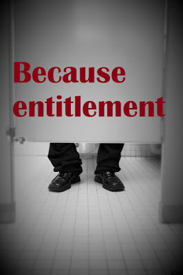 She kept her eyes straight ahead and trucked in, strutting past the yellow-stained urinals with a sense of high dignity (and by a large man hunkered up to one), and entered one of the two stalls. A pair of brown boots were visible in the stall next to hers, but she ignored it. It was only when she sat down did she hear the deep, manly voices.