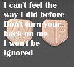 Effexor is why I can listen to Linkin Park’s Meteora album while driving (at the speed limit) in my Volvo without feeling like people will think I’m old. I was already old when the album came out. It’s why writers don’t need to drink. It’s a lullaby for an anxious existence. It’s Wyeth-Ayerst Lab’s gift of sublime “synapsical” serotonin. Thanks you guys. I can alter my existence without throwing up now. Only I can't leave your drug. It won't let me.