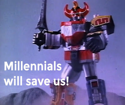 O.M. God. These creatures of the digital tar pits are humanity’s saviors. They speak differently than the rest of us. They dress differently. They know life hacks. And they shoot Periscope videos of themselves doing it. Like a phoenix dressed in 80s fashion rising from a pile of entitled, home-schooled ashes, Millennials hold a fist full of dollars and aren’t afraid to spend them. Praise them, lavish them with a weird sense of high self-worth, for when combined – like Voltron or Megazord – they are the second coming.Just knowing how to ‘scope is a feat. For the rest of us, it’s just another social media platform that we might someday explore when time and the non-digital world allows (IRL), but Millennials make the time for these important things. Trump memes won’t post themselves. Millennials make the time to change the business world to suit their personalities. First there were slackers, but Millennials; by God, they’ve turned the slacker life into a series of well-shared LinkedIn articles.