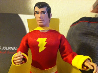 Take that, thief!Whether or not my mom tried to find me a replacement I'm not sure. We drove around in a beat up Volkswagen bug with a wooden back bumper and ate TV dinners most nights. I never felt the need to steal at that point in my life, not that I didn't dabble in it (all young children do), despite living in a neighborhood with a hooker on the corner, but we were not in the haves category either.This is why, almost forty years later, I get all giddy and childlike at the thought of a new Shazam! Not a new TV show or movie, although I hear that's in the works, but because those old MEGO dolls are back on the market – aimed smack dab at aging nerds like me with their own mess of issues, children they want to share a second childhood with, and a general distrust for society.