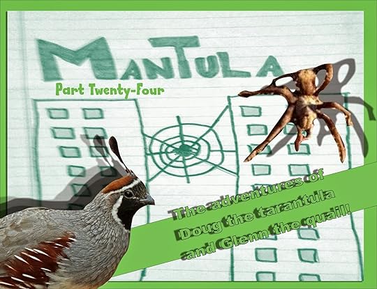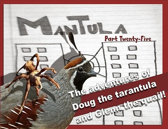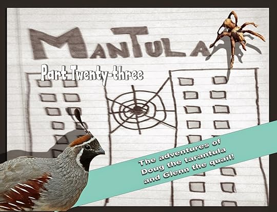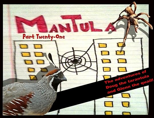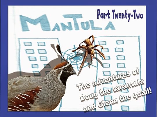 I rode atop Glenn as he made his way through the muggy Arizona weather. The fast-moving man-turned-quail moved deftly through the bushes and assorted trash strewn at the edge of the road. Large rain bombs fell from the gray skies overhead, exploding like water balloons all around us, but a full-blown storm had yet to begin.I made a sorry attempt to remember my life prior to becoming a nasty little tarantula. Only I couldn't remember it. My life had changed so much in the last few weeks that everything else began to blur. Not the big things. Not my son. Not the image of him. Not the sound of his laughter. Not the way I felt when he sat in my lap and we read comics. All of those things burned in a hole in the center of my chest that sucked all happiness from my soul. What I could remember, with full clarity, was how I woke up in this body, how confused I felt. I remembered trying to kill myself by leaping from Coffee Pot Rock. Obviously that didn't work out in my favor. From there I got filmed free-falling by a drone, nearly caused a car wreck, and ended up meeting Glenn under a bush. I also happened to find that $100 bill I just gave away.