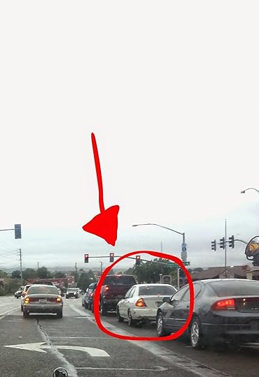 Looking back, I saw a pile of cars at the intersection. At least three were clustered there, not moving, with smoke and steam rising from various area of damage. ManQuail kept his little legs peddling. As we made our way toward the Adobe Apartments people began to emerge from the vehicles. One of them aimed a cell phone our way and appeared to be snapping photos.