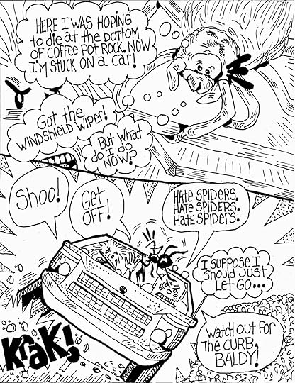 Since waking up in the body of an ugly, hairy tarantula earlier today, my life has gone from weird to just plain insane. If being a large arachnid wasn't bad enough, my goal of “doing something else” – which meant springing to my death off Coffee Pot Rock – didn’t work out as planned. I ended up drifting over State Route 89A in Sedona and getting stuck on the windshield wiper of a speeding car. From there I got thrown on the shoulder of the highway and landed near a bush. Pretty sure the car I bounced off of crashed as a result of my unannounced landing too.