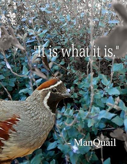 I tried to shrug, and then realized it probably looked more like a pushup. But then again, I was writing notes to a quail, a ManQuail, so what did it matter?