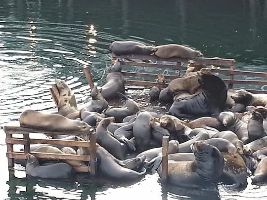The sea lions of Monterey.While stopping for a last look, and dinner, at Old Fisherman’s Wharf the day before driving back to Sedona, we were treated to a creative, and large, sea lion that appeared to be waving at us from the water. Our table overlooked the harbor where boats pull into their slips between Wharf One and Wharf Two, and it’s here where many of the sea lions gather to dry off and soak up the sun atop a floating wood platform that, by every appearance, was put there just for them. The lion outside glided through the cold bay, on his side, with one flipper sticking straight up out of the water – almost as if he didn’t want to get it wet, or like he wanted to bid us adieu before we split for the desert. My brother said they often play with dolphins and that, perhaps, the lion mimicked their sea-faring companions. A quick Google search, however, revealed a more scientific reason, full of blood vessel information, thinner fleshy spots and articulation. The information could be distilled into one sentence, however. They do it to cool off.
