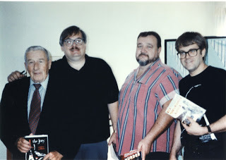 But the main gist of this post is to recognize, on what would have been his 100th birthday, the power and importance of Mickey Spillane and his work. Thanks to the strength of his writing and to the continuing efforts of Max Allan Collins (at the urging of Mickey before he died) to complete many of Spillane's partial manuscripts, his work continues to be enjoyed by millions yet today.As for me, I'll always not only have the satisfaction of enjoying said work, I also will have the memory of meeting Mr. Spillane in person and finding him to be every bit as cordial and engaging as you would hope for one of your heroes (and influences) to be.Happy birthday, Mickey!