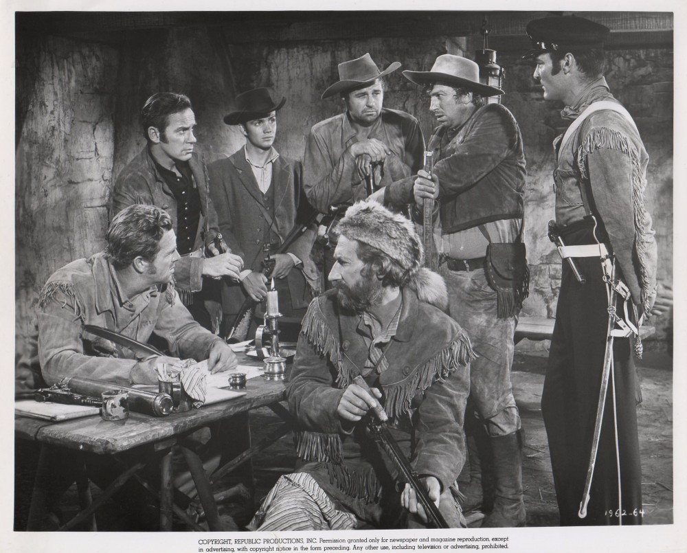 Produced and released through Republic Pictures, this is a considerably more ambitious feature than the Disney feature (which was originally made for TV) though not nearly on the scale of John Wayne's epic THE ALAMO which would come five years later. The well known back story is that Wayne, who was Republic's biggest star for many years, had long wanted to make a film about the Alamo. Herbert J. Yates, the head of Republic, strung him along for a number of years. A script was even written and approved. But Wayne, wanting control to tell the Alamo story his way, insisted on producing and directing the film; Yates wanted him only as a star. Wayne left Republic Pictures over the dispute and Yates refused to release the prepared script to him. In the end, once Wayne's version was completed and released in 1960, there are a couple key scenes that closely mirror each other and of course the overarching story is the same. But otherwise the two films have their own distinctions and both, in my opinion, turned out pretty good.