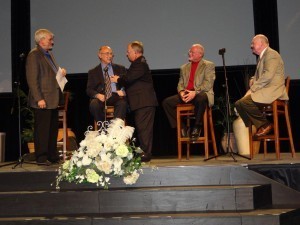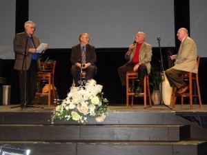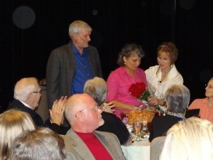 The emcee of the evening was Dr. Tommy Mitchell, an AiG speaker and medical doctor. With his stethoscope, here he is checking the “heart” condition of the four anniversary men. Jim (far right) was diagnosed as having the biggest romantic heart.