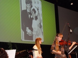There was special music for our dinner guests, as photos of the four couples and their families were shown on the screen behind the musicians.