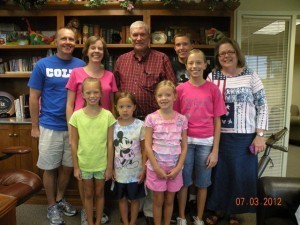 Left to right are Mark and Becky Byars, me, Tyler, and Anne Coates; front row: Savannah, Bailey, Mariah, and Brooklyn.