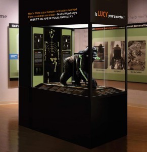 The new high tech Lucy exhibit will be ready for Creation Museum visitors to see beginning this Saturday. Installation is well under way. Here is an artist’s mock up of what part of the exhibit will look like: