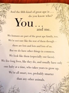 But—this is where the world is at today. And if the San Diego Zoo is selling this book, they must approve of its contents. Shame on the San Diego Zoo (one of the world’s leading zoos) for promoting the false idea that we are just another ape—and we are “probably smarter than any other animals.”