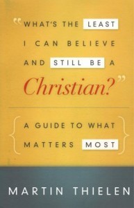 Martin Thielen, the senior pastor of Brentwood United Methodist Church in Brentwood, Tennessee, has written a new book titled What's the Least I Can Believe and Still Be a Christian? Pastor Thielen says in the preface that he will list 10 things Christians do not need to believe (what he calls "closed-minded faith") and then 10 things Christians do need to believe, which he summarizes, "They need to believe in Jesus—his life, teachings, example, death, and resurrection." Pastor Thielen encourages churches to use his book for small group Bible studies, and indeed there are some churches doing just that. He's even made the study leader's guide available online.