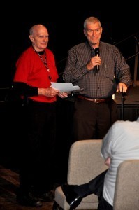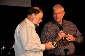 At the AiG staff chapel this past week, I had the privilege of giving Buddy his 15-year service award—15 years as a staff member of AiG. Here is a photo of Buddy as I explained how Buddy came on staff and his role in the vision of the Creation Museum: