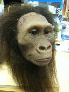 There will be five copies of the Lucy head on the back side of the exhibit, each finished with different eyes, skin coloration, and hair color/pattern. The teaching point will simply be that nobody knows for sure what Lucy looked like, so the artist projects his beliefs about Lucy onto the viewer simply by his artistic choices. We will probably also display the fragmented skull (casts of what was actually found) with these heads to emphasize how little there really is to go from.