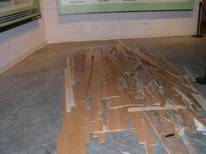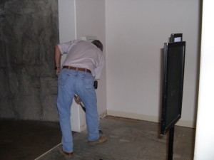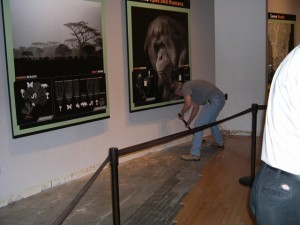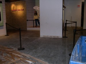 Once they finished the Special Effects Theater, our facilities team moved on to the "Starting Points" room, where the floor is badly in need of replacing. Here are some photos as they begin this job.
