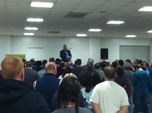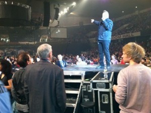 In the first photo, I am waiting to go on the stage and briefly speak to the huge crowd.