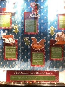 As we are holding eight special days of Christmas celebrations at the Creation Museum called Christmas Town, we have created a new display that centers on the real meaning of Christmas. As guests enter the portico of the museum, they will see a display that discusses the origins of some holiday icons like Santa Claus and how such figures detract from the centrality of Christ during Christmas.