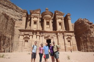 Cory is at the far left in this photo taken in front of the famous "Monastery" of Petra, Jordan.