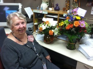 Here is a photo of Marlene with some of the flowers given to her yesterday.