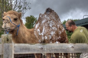 Our beloved camel, Gomer, who resides at the Petting Zoo at the Creation Museum received a bubble bath recently. I thought you would enjoy a photograph of this event: